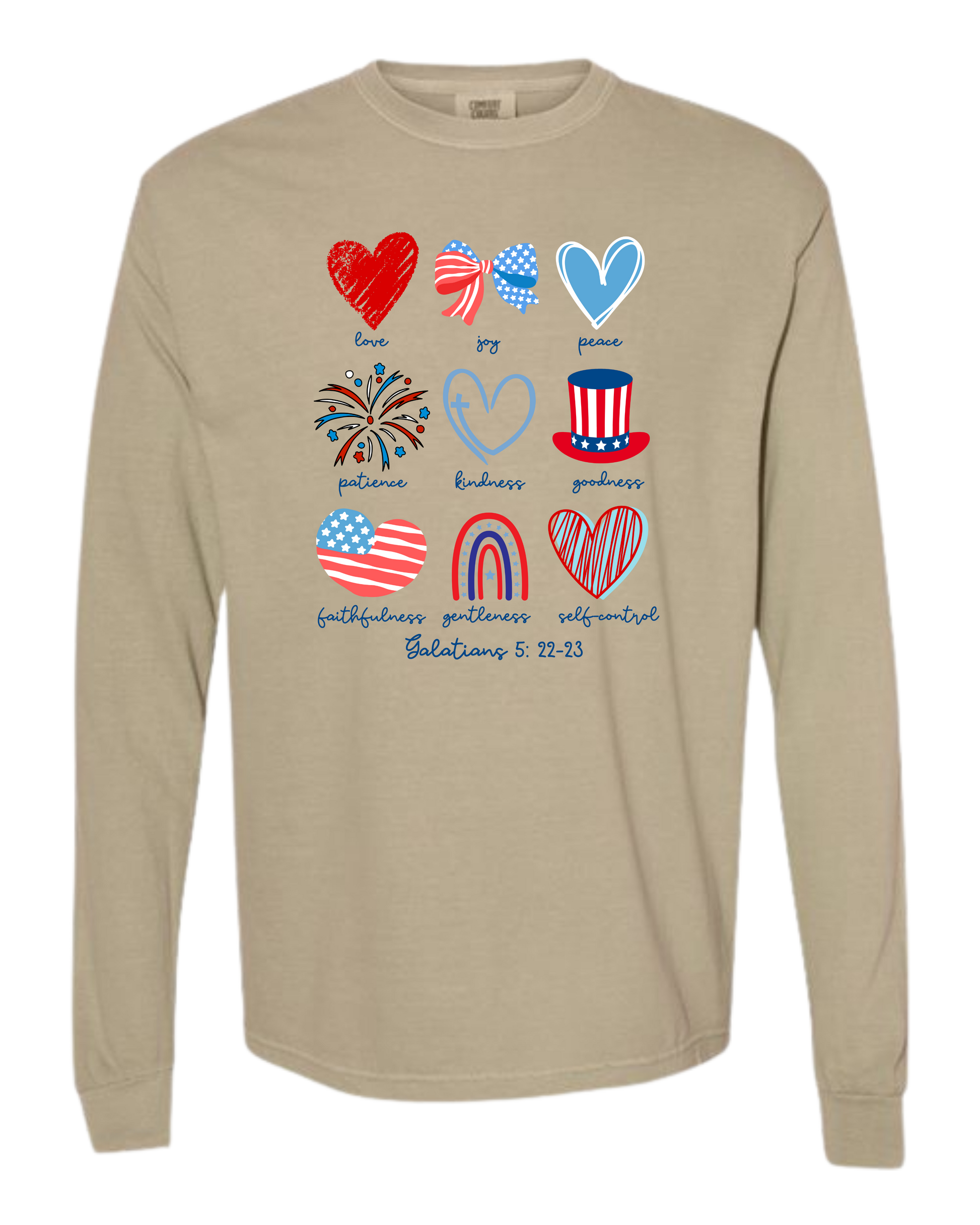 Galatians 5 - Patriotic - Comfort Colors - Heavyweight Long Sleeve Tee - Neutral Colors