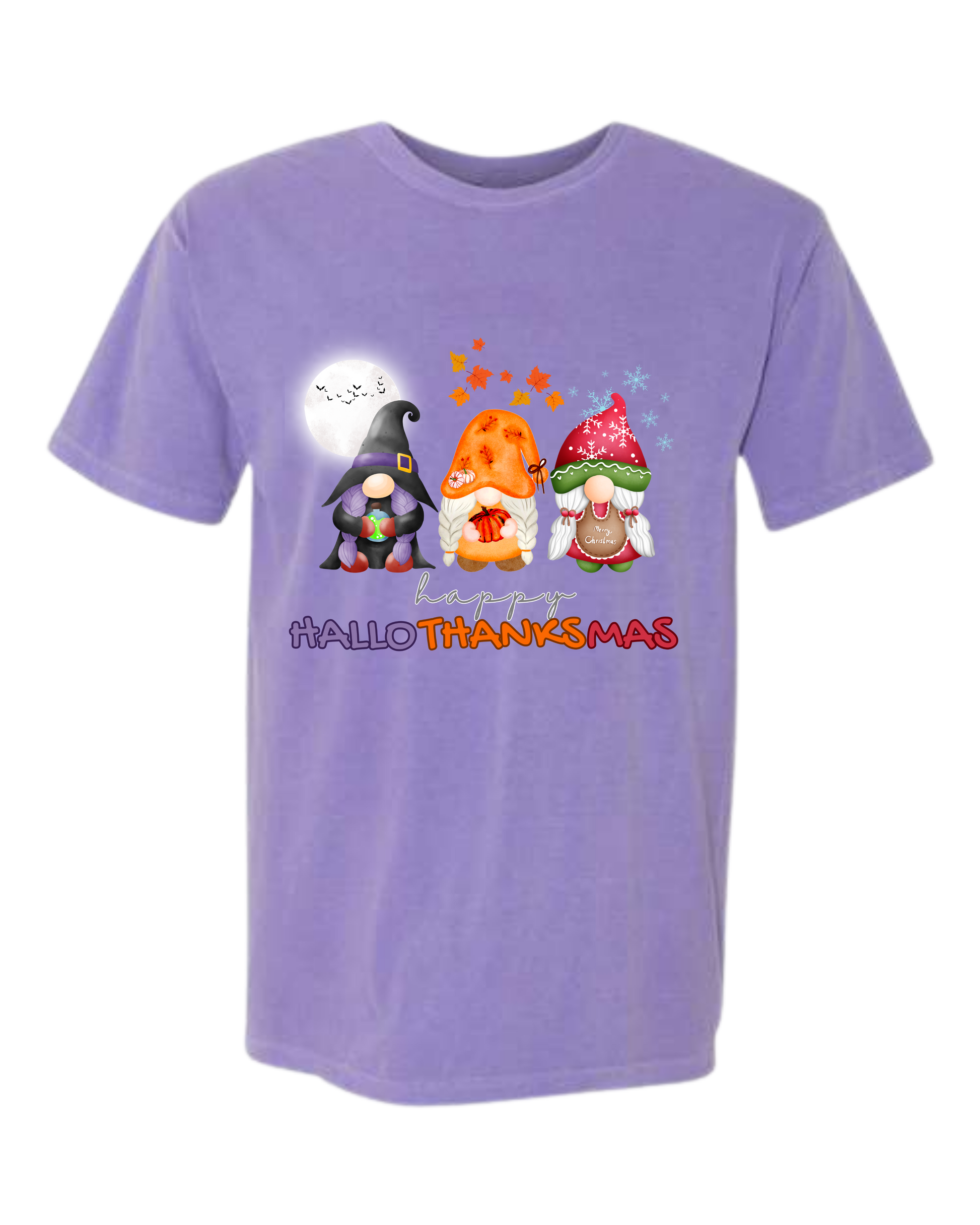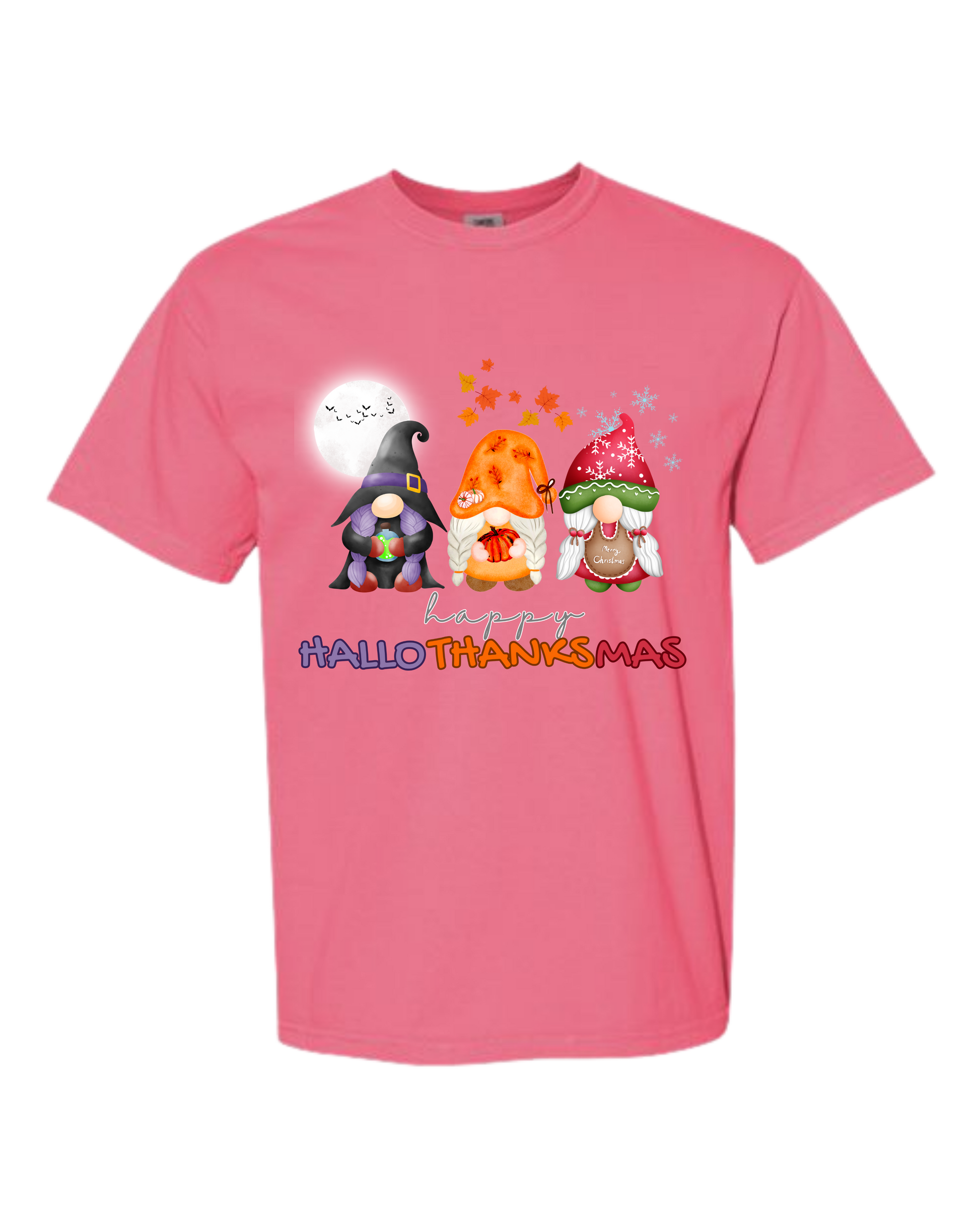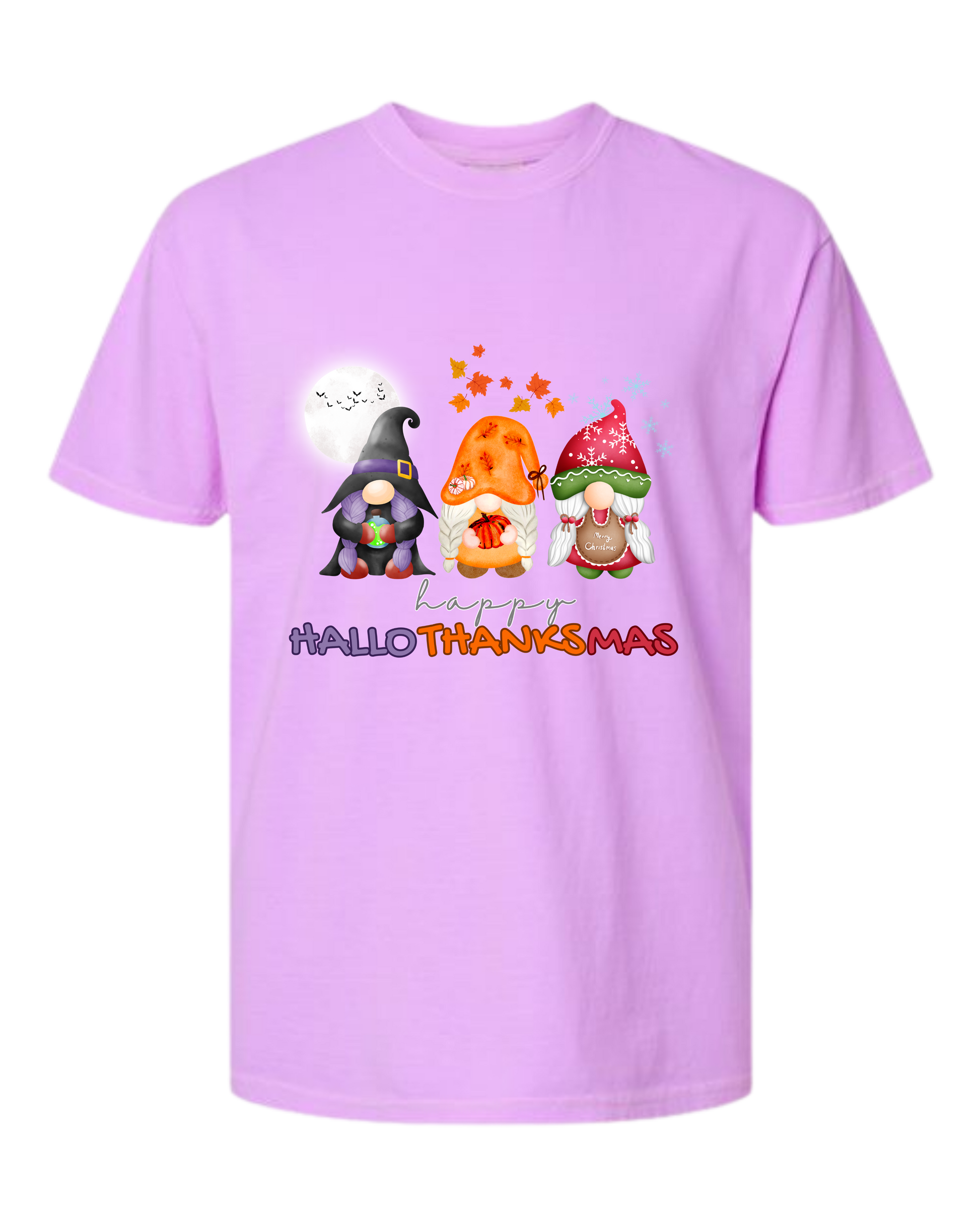 Happy HalloThanksMas Gnomes - Comfort Colors - Heavyweight Unisex Tee - Pinks, Purples