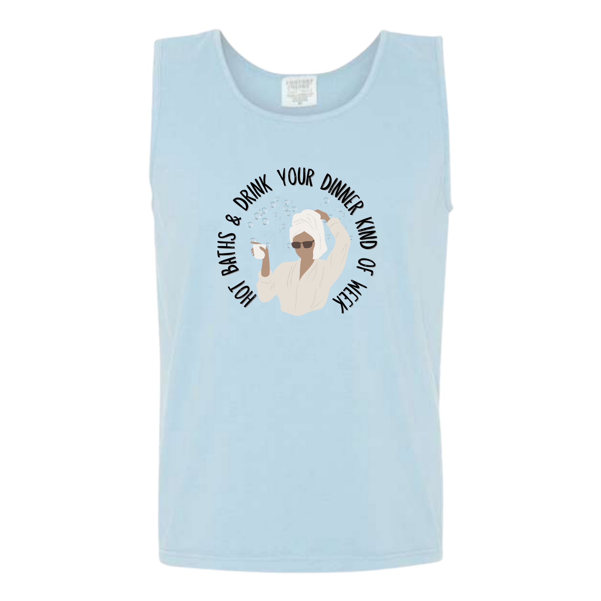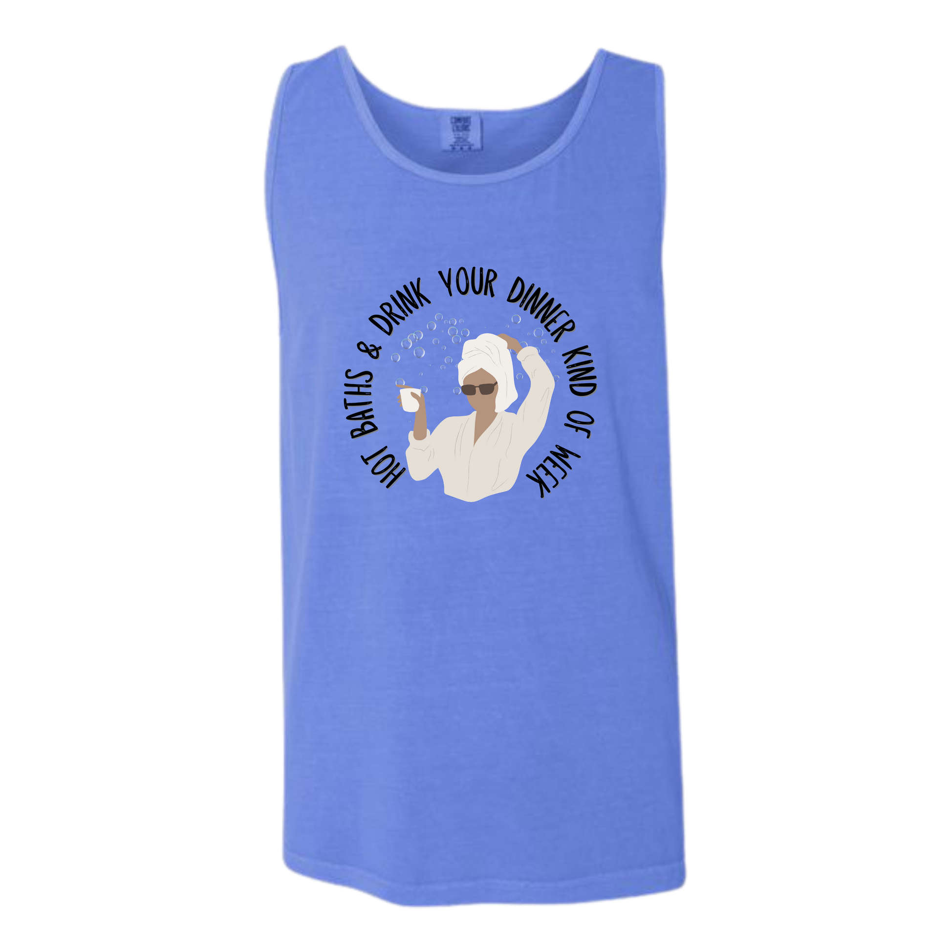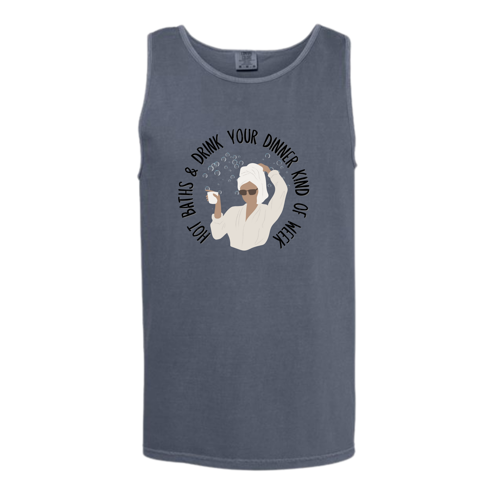 Hot Baths and Drink Your Dinner Kind of Week - Comfort Colors - Unisex Tank - Neutral Colors & Blues