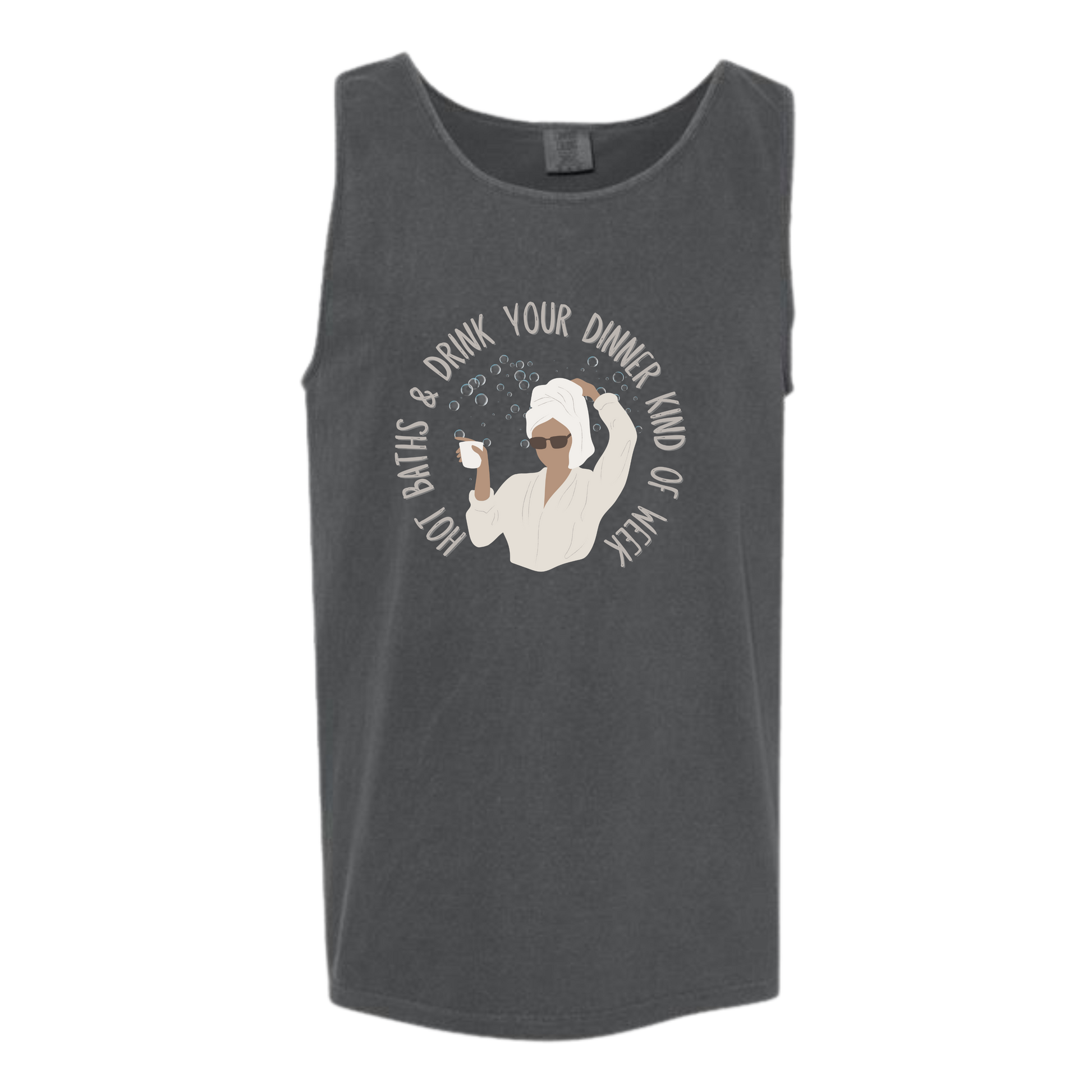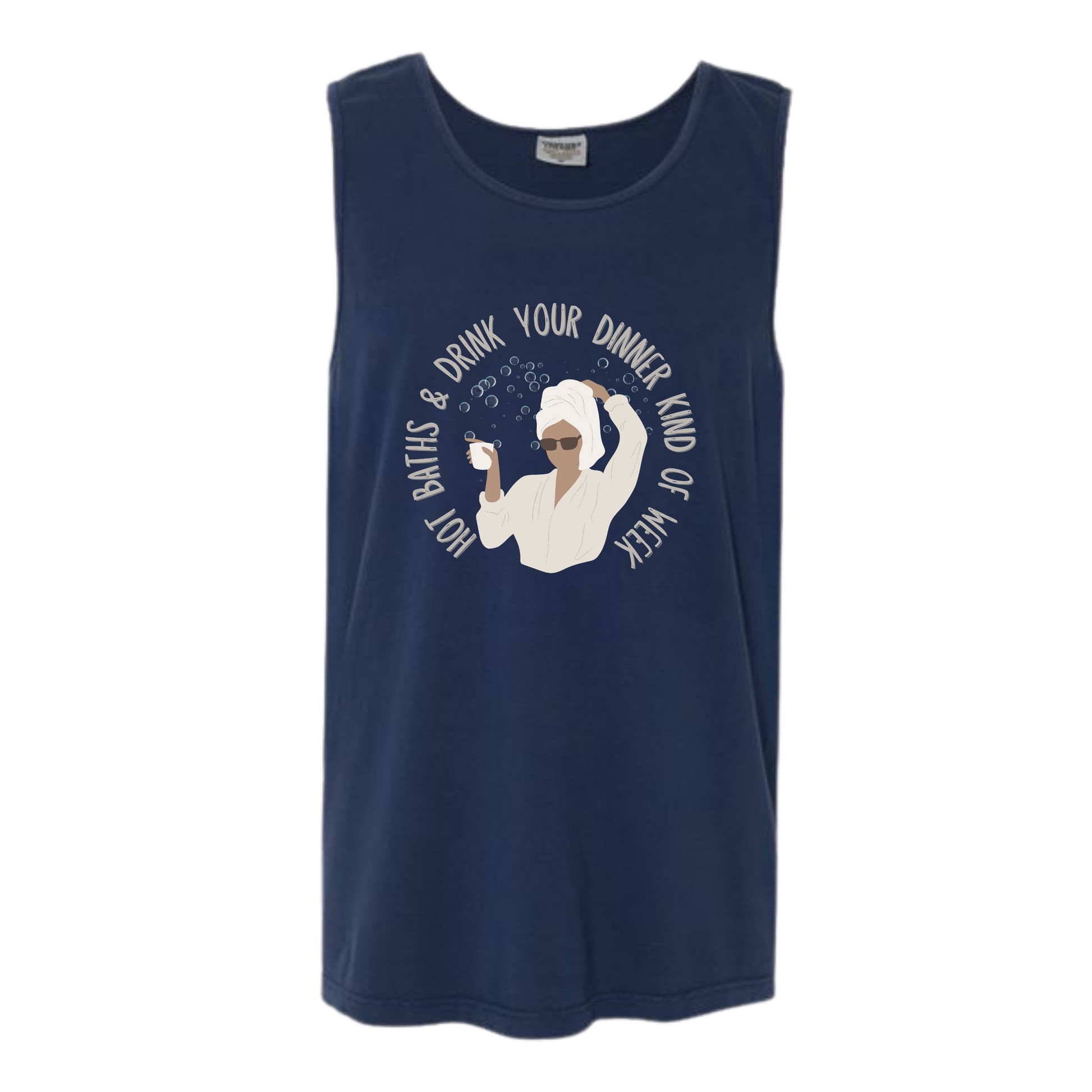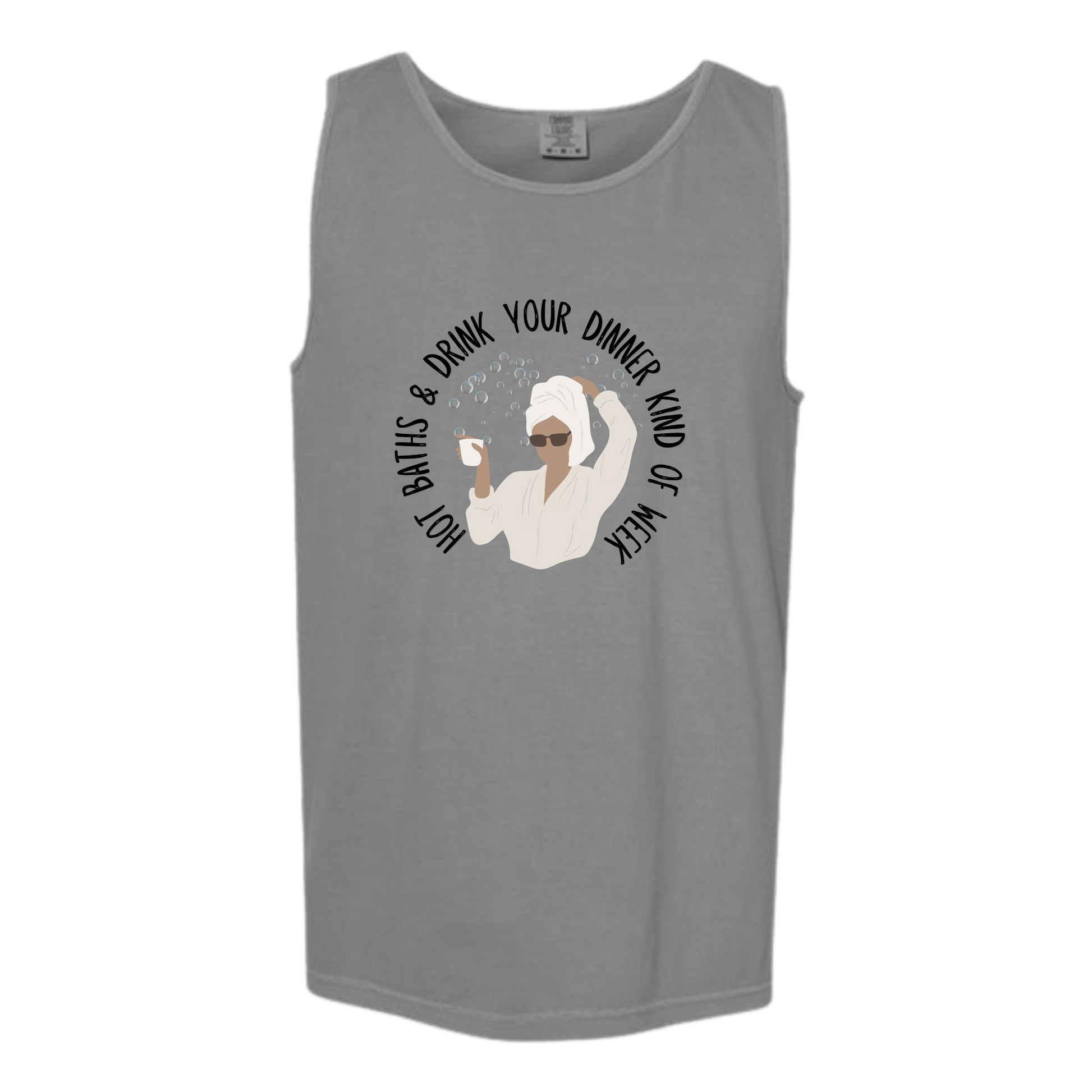 Hot Baths and Drink Your Dinner Kind of Week - Comfort Colors - Unisex Tank - Neutral Colors & Blues