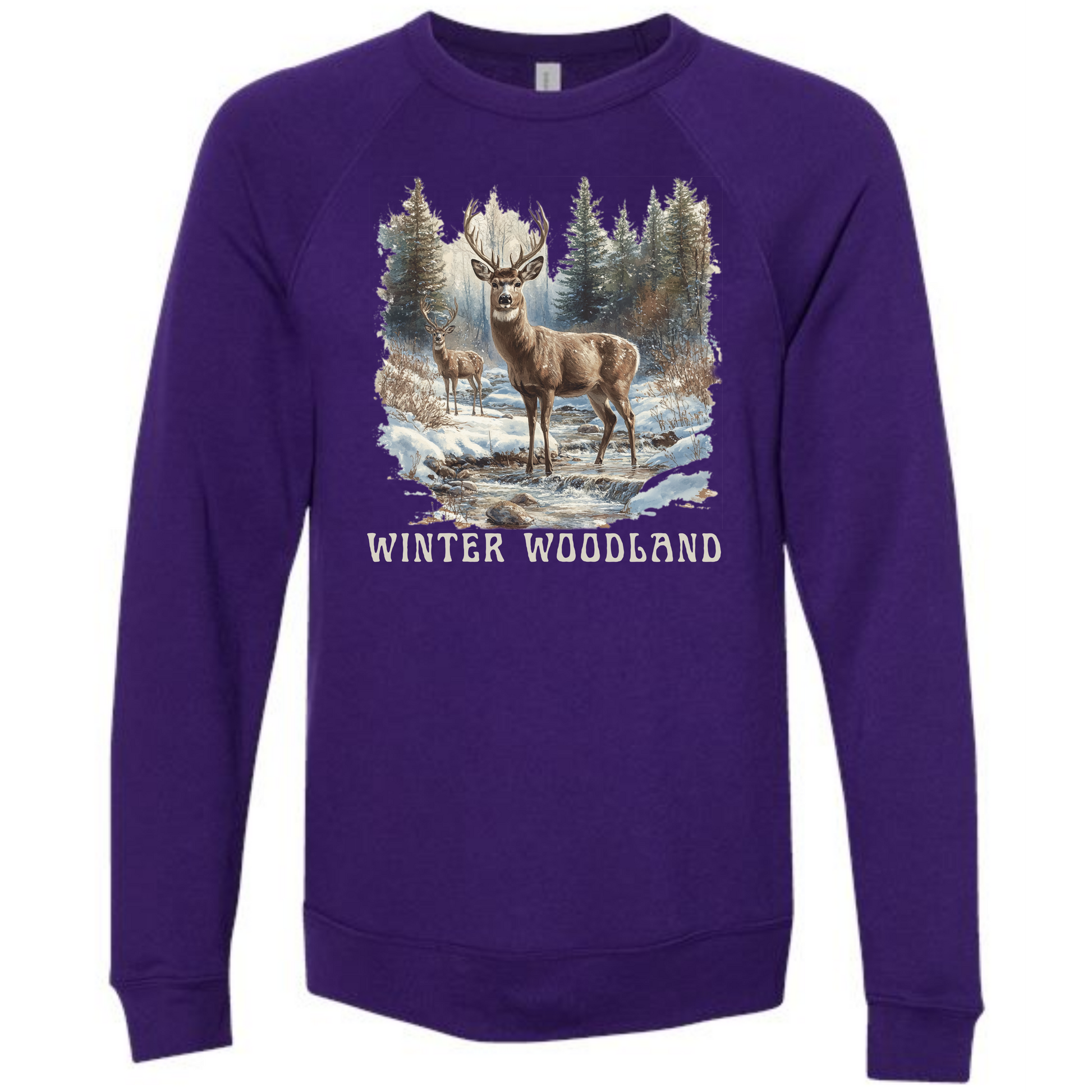 Winter Woodland - Sponge Fleece Raglan Sweatshirt - Blues, Purples