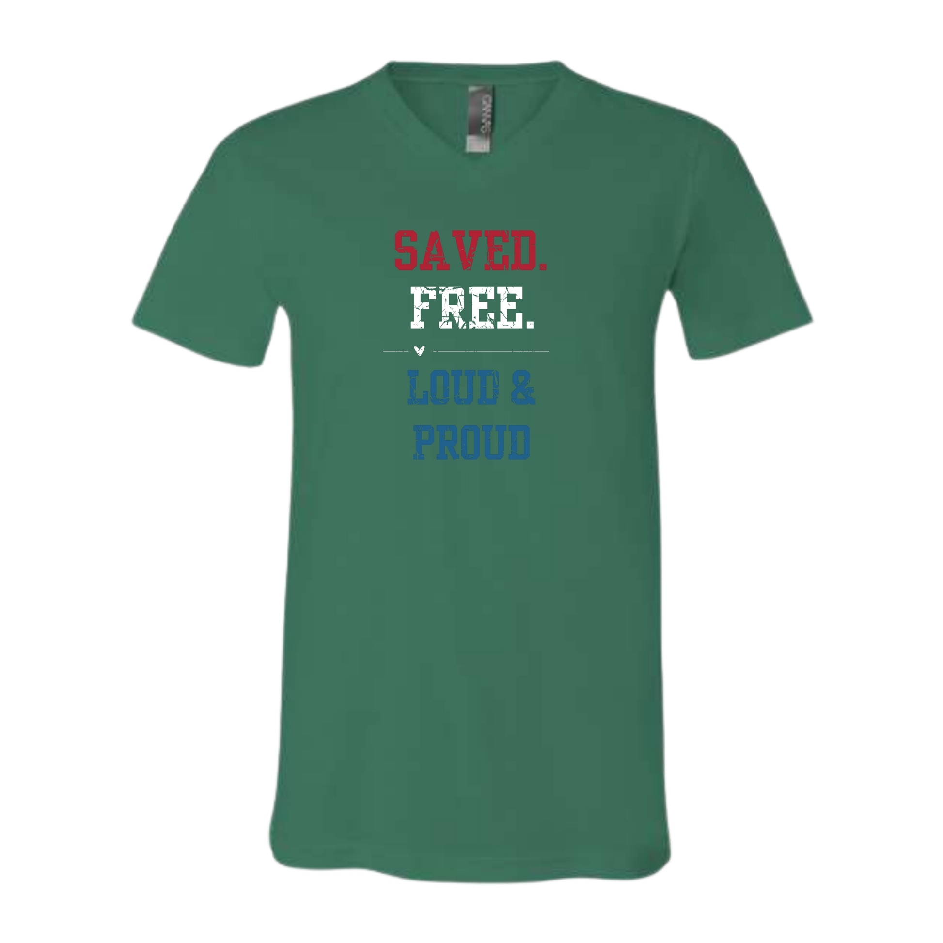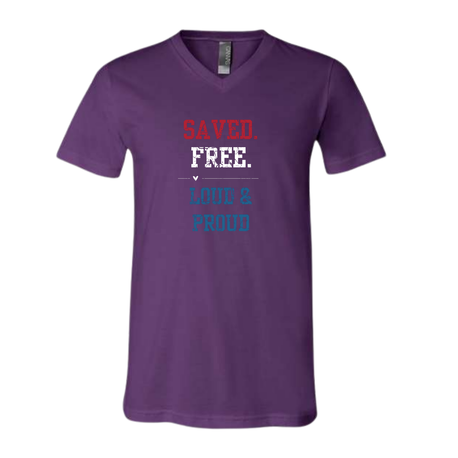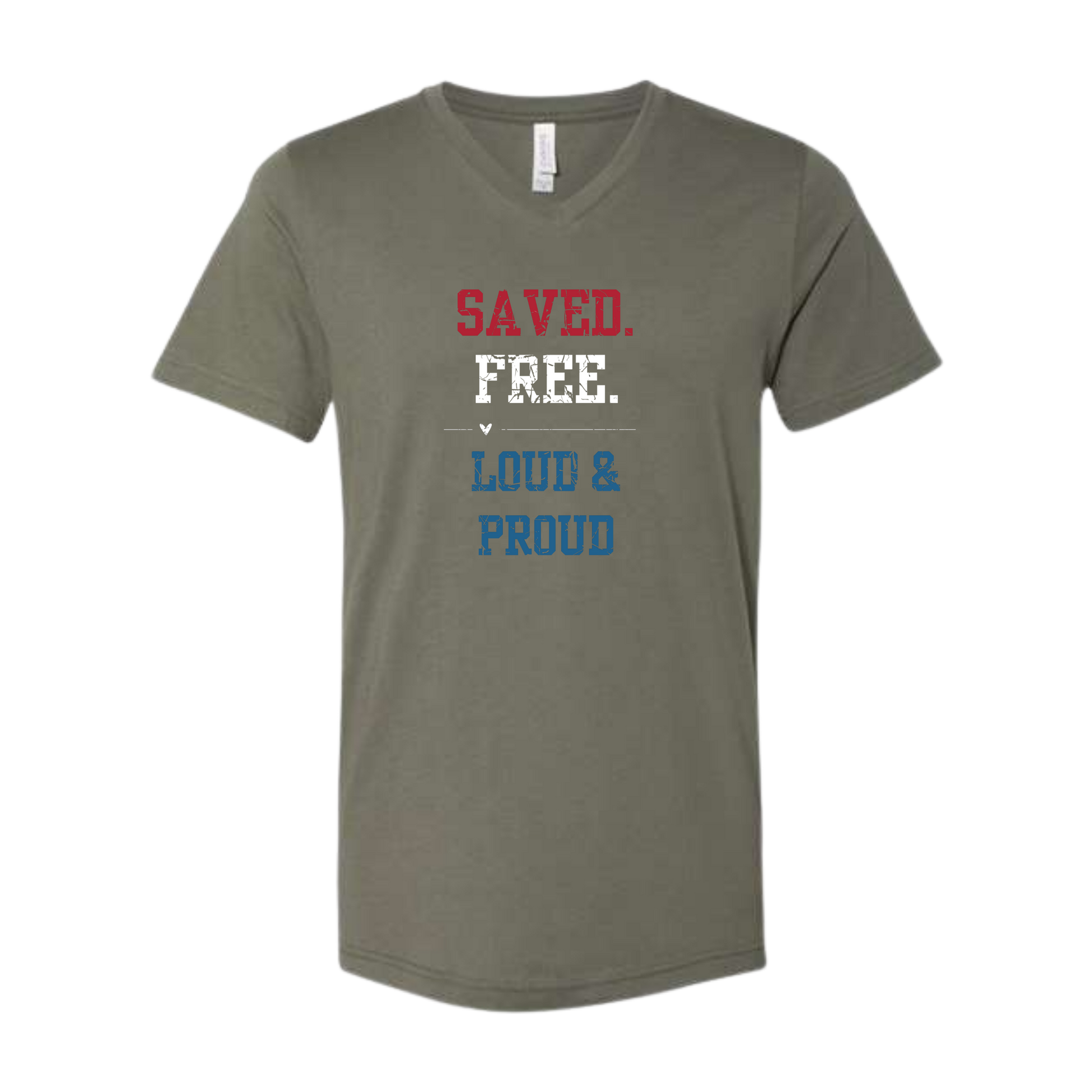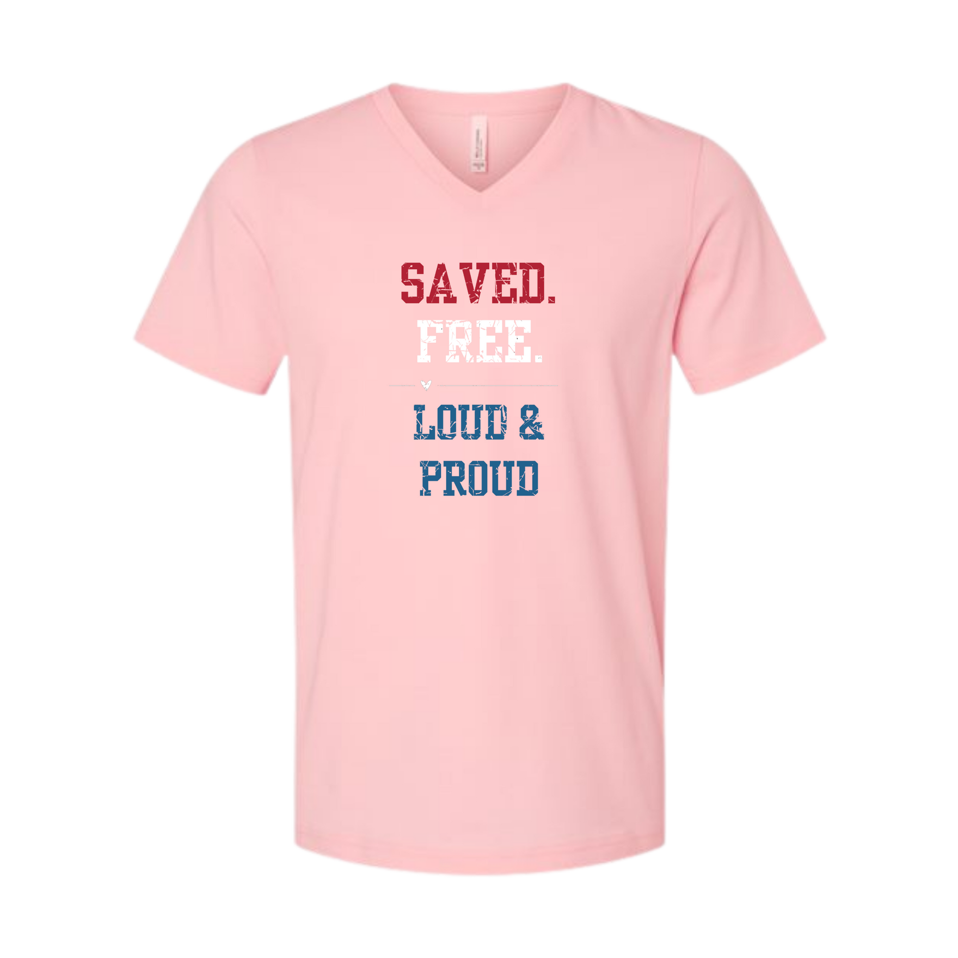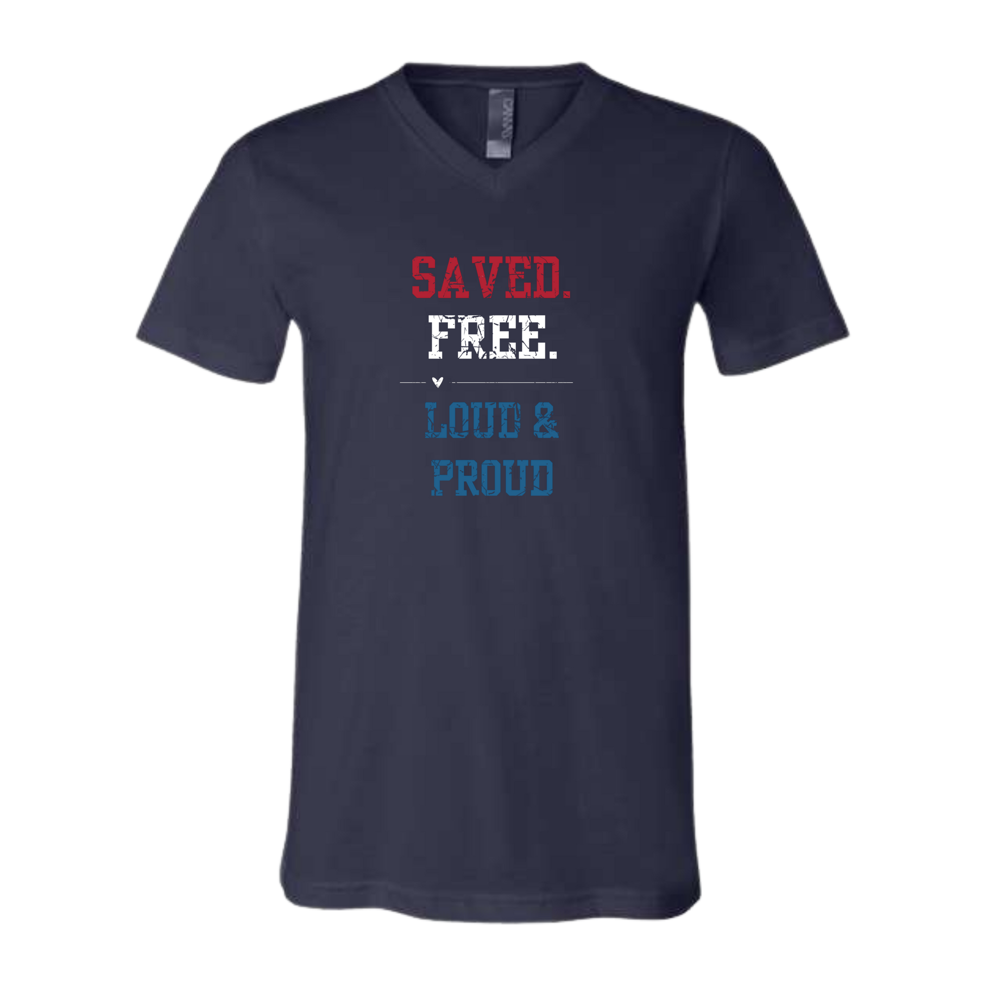 Saved. Free. Loud & Proud - Bella+Canvas - Unisex V-Neck - Assorted Colors