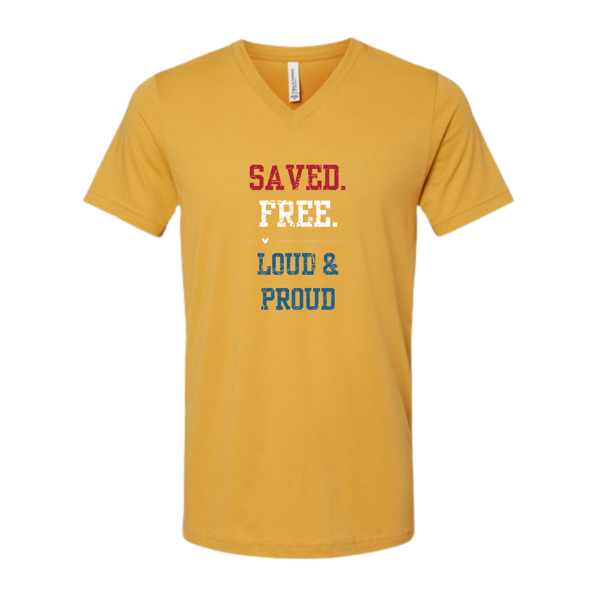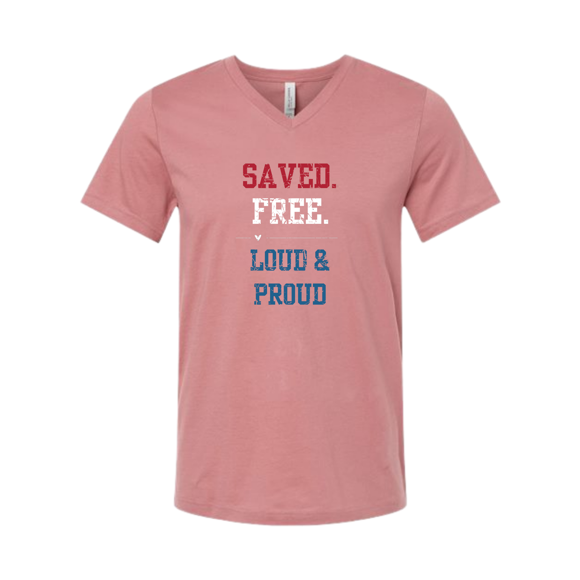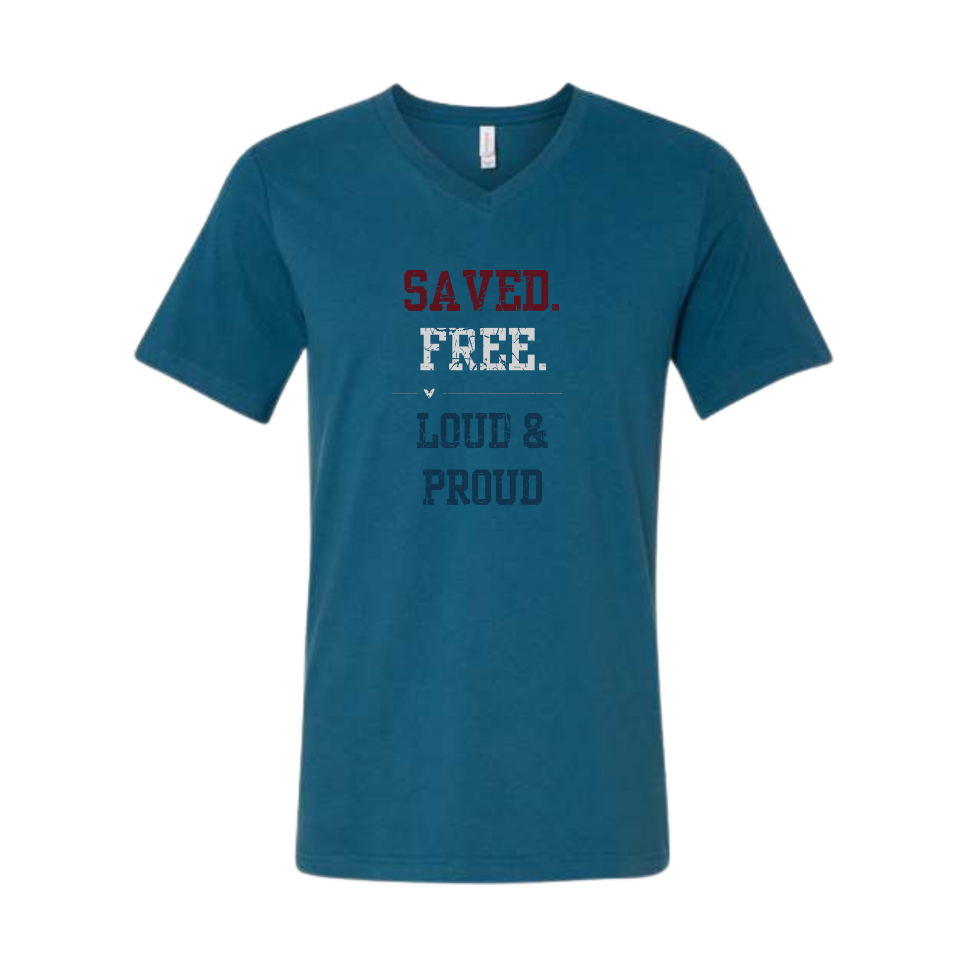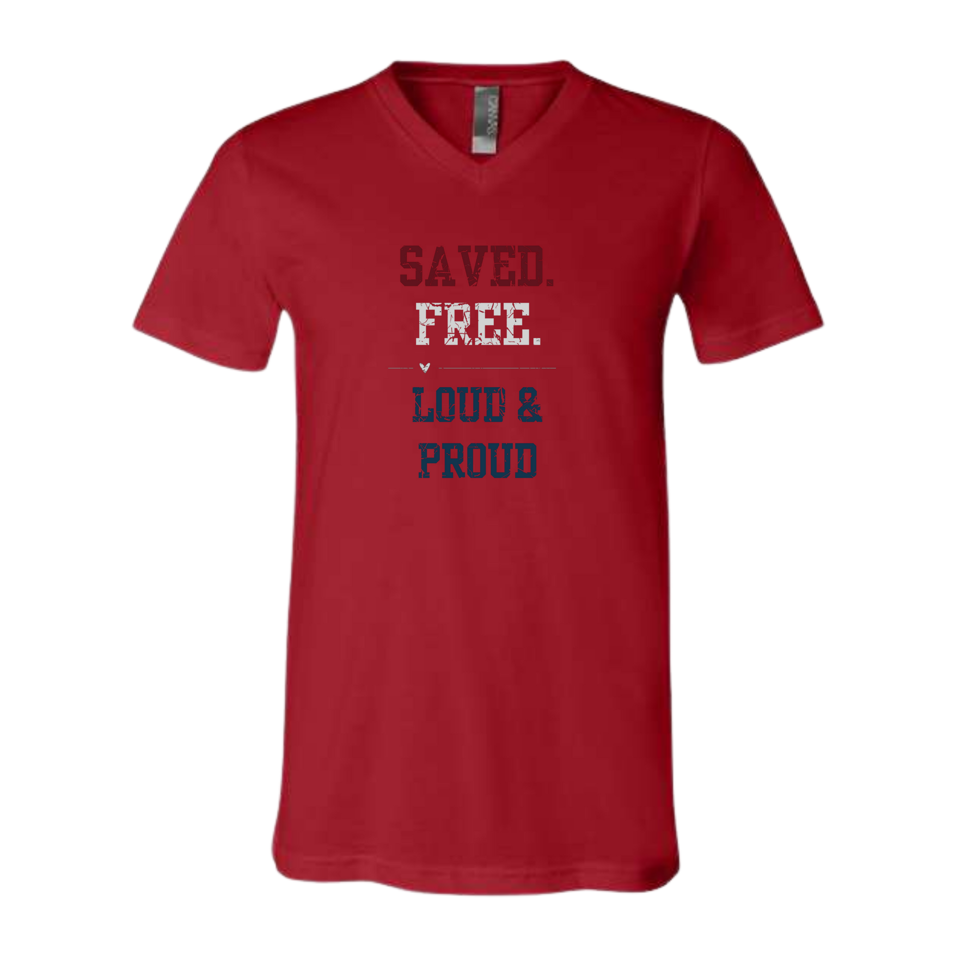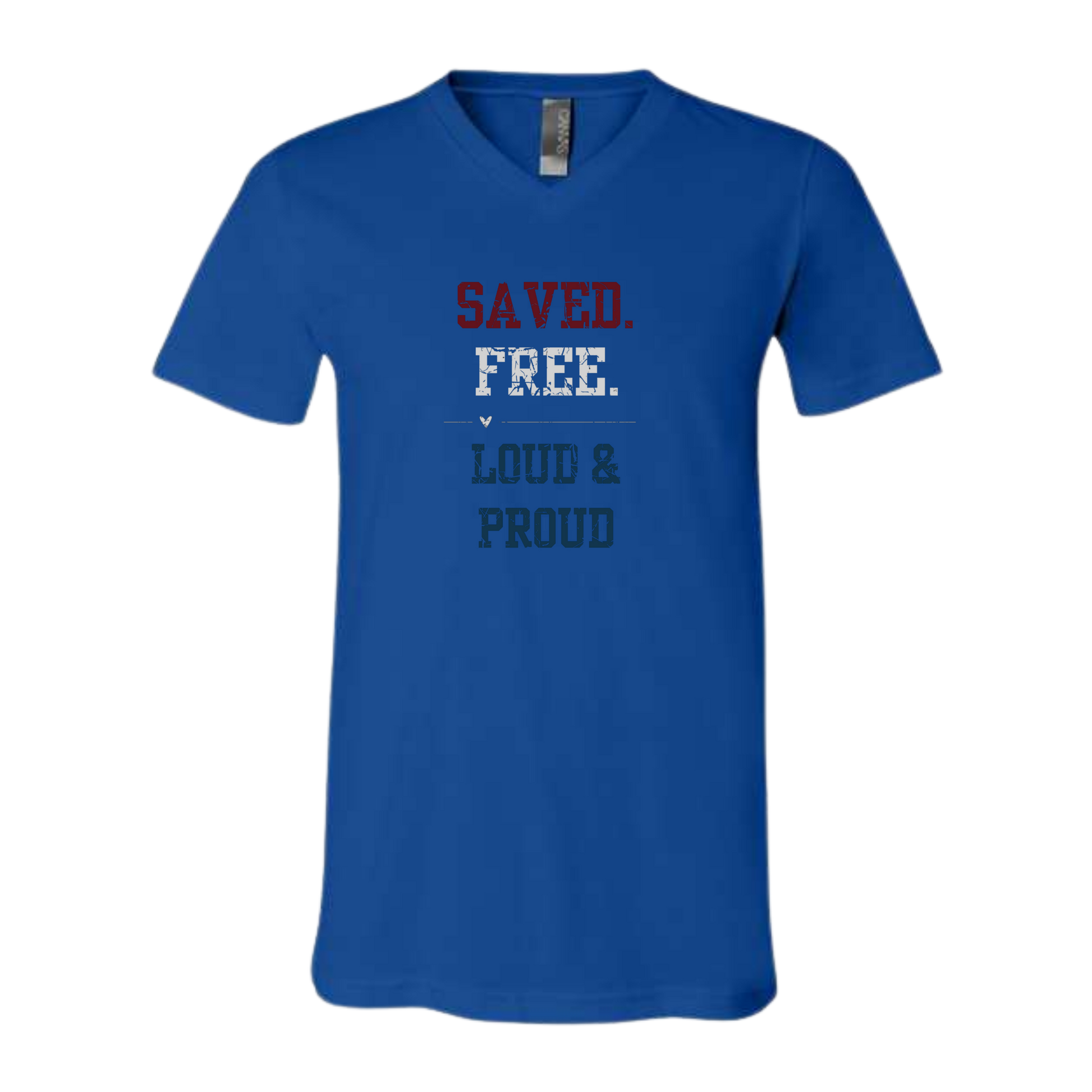 Saved. Free. Loud & Proud - Bella+Canvas - Unisex V-Neck - Assorted Colors