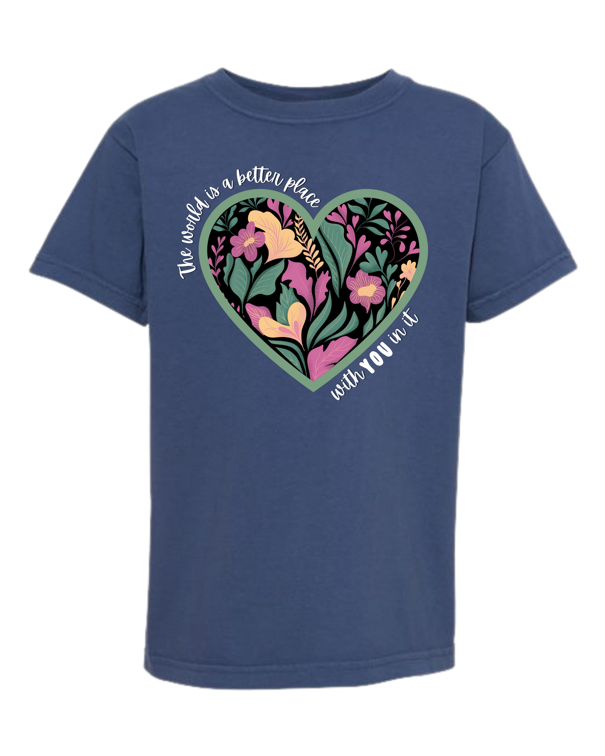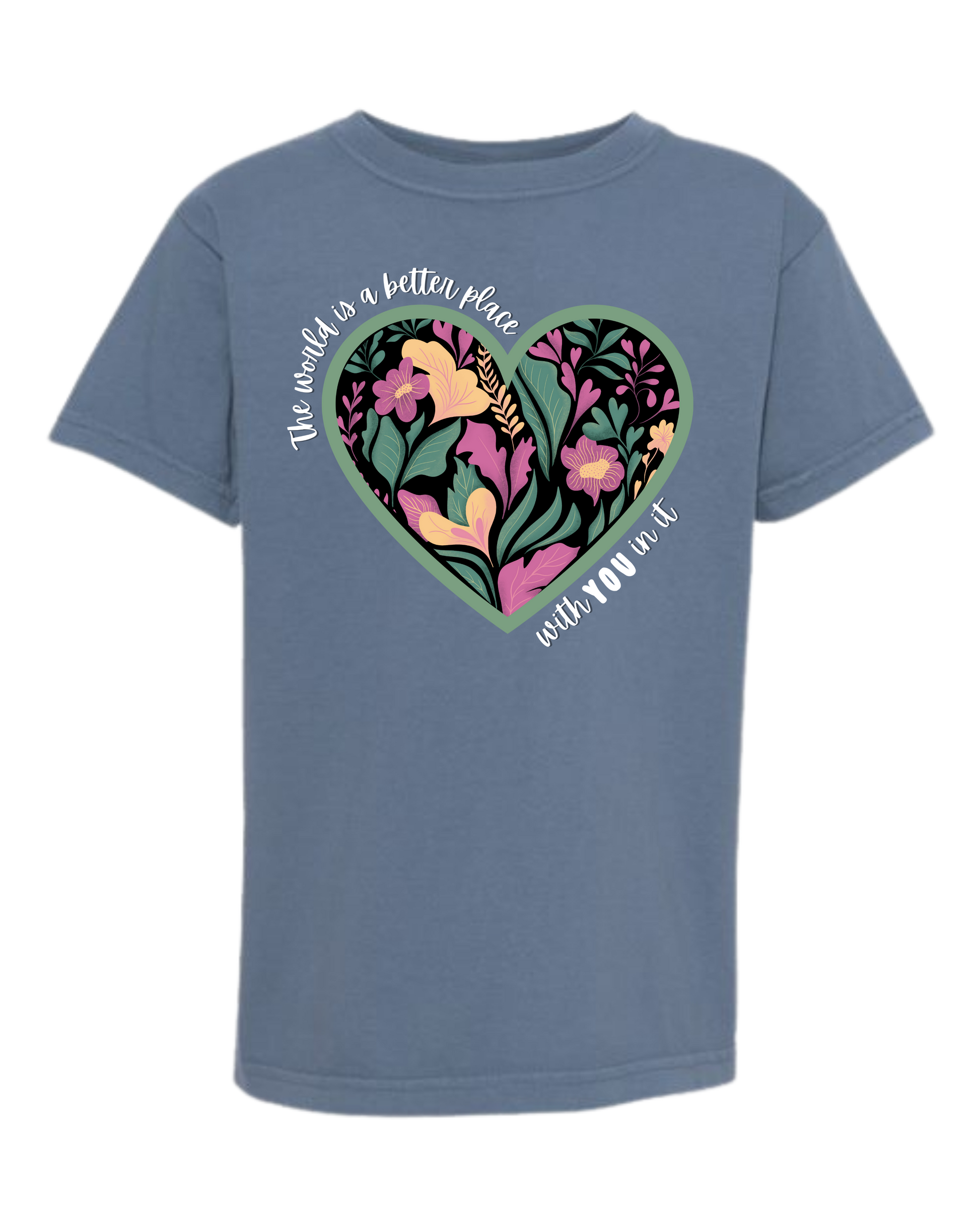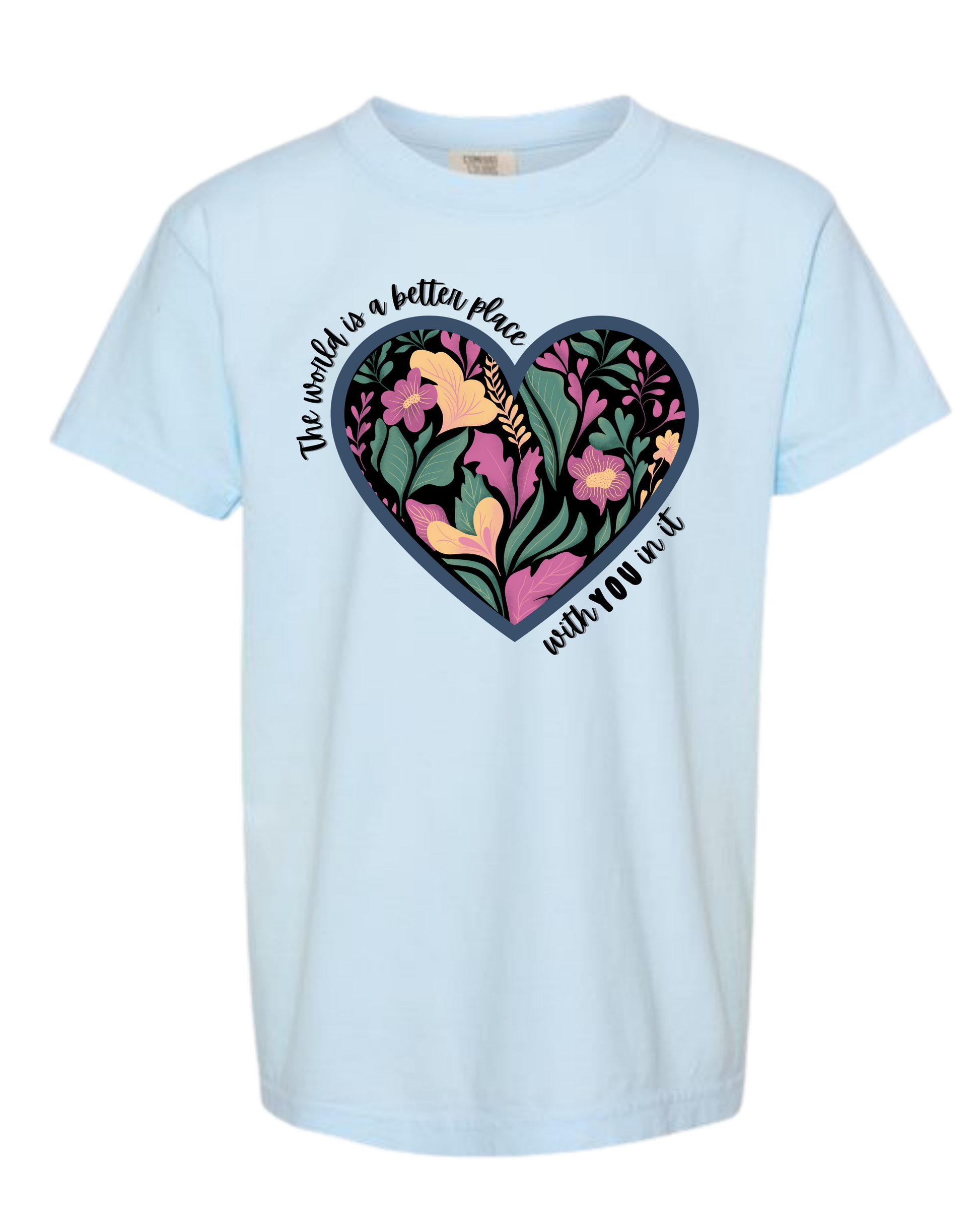 The World Is A Better Place With YOU In It - Comfort Colors - Heavyweight Youth Tee - Neutral Colors & Blues