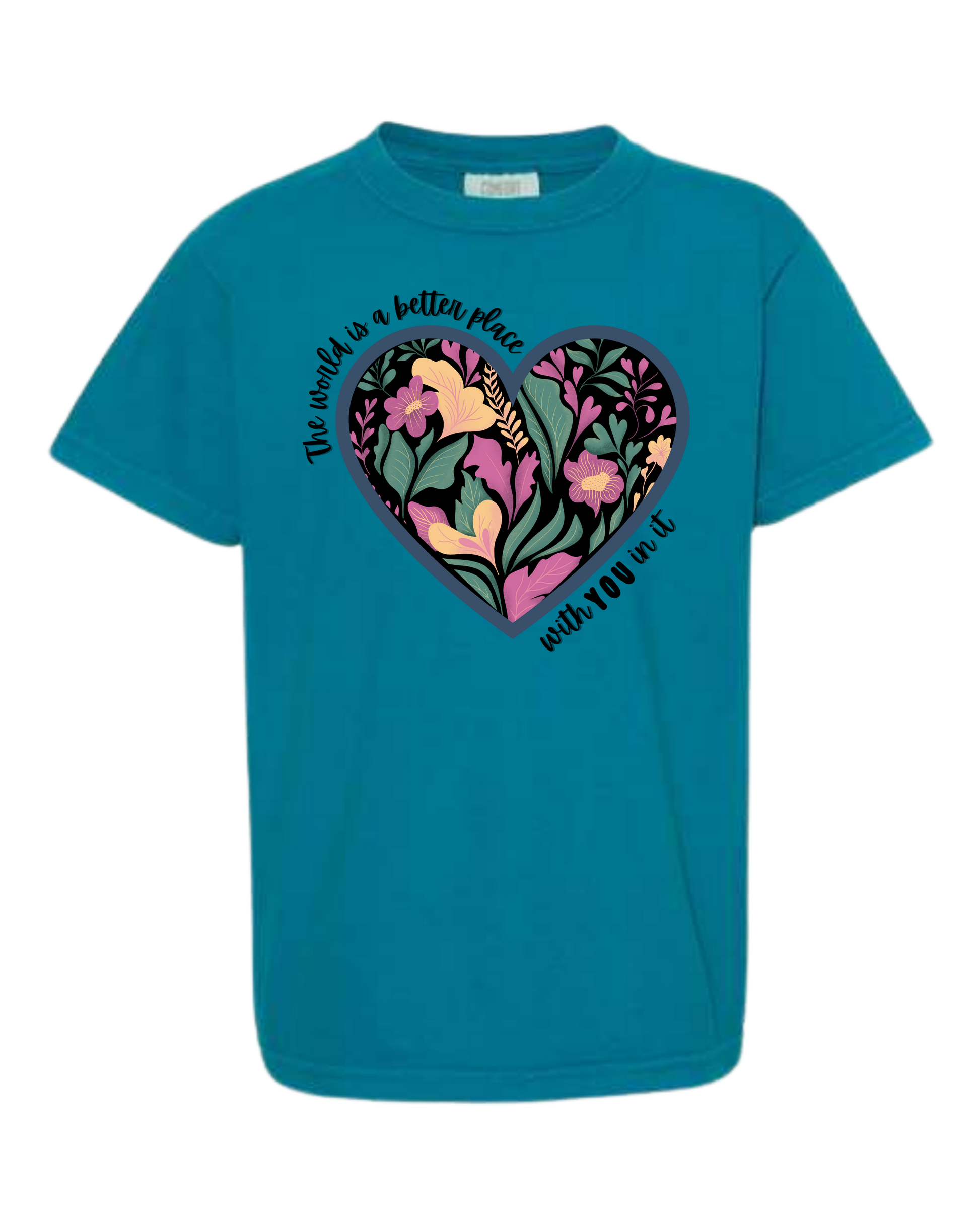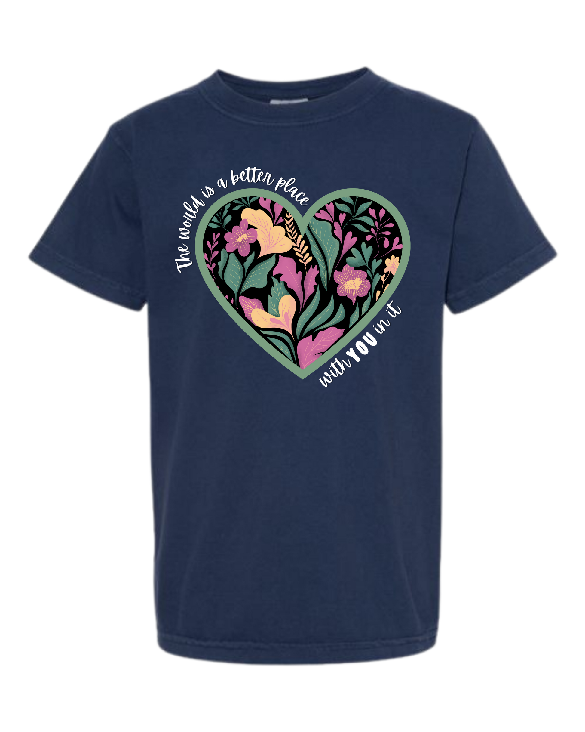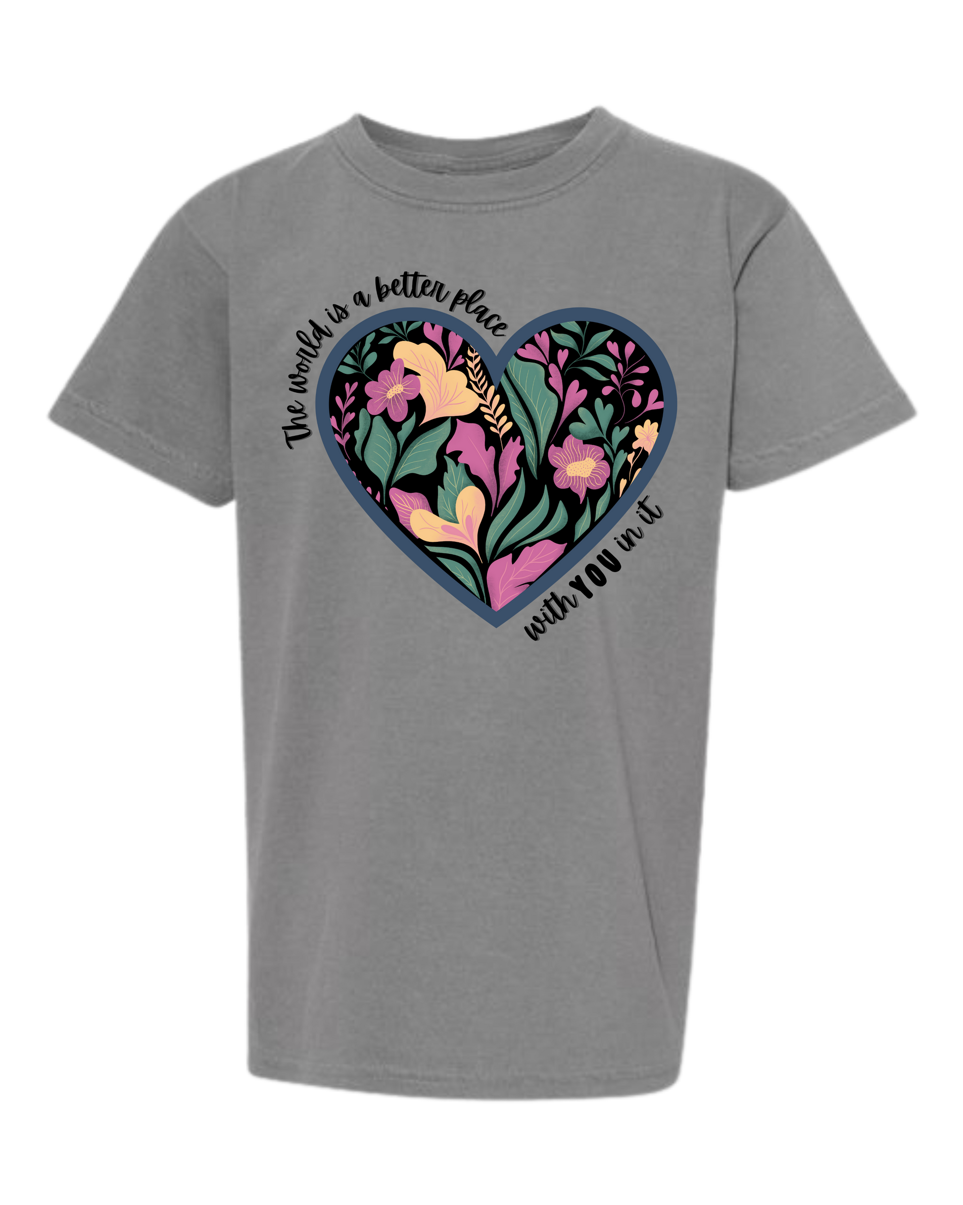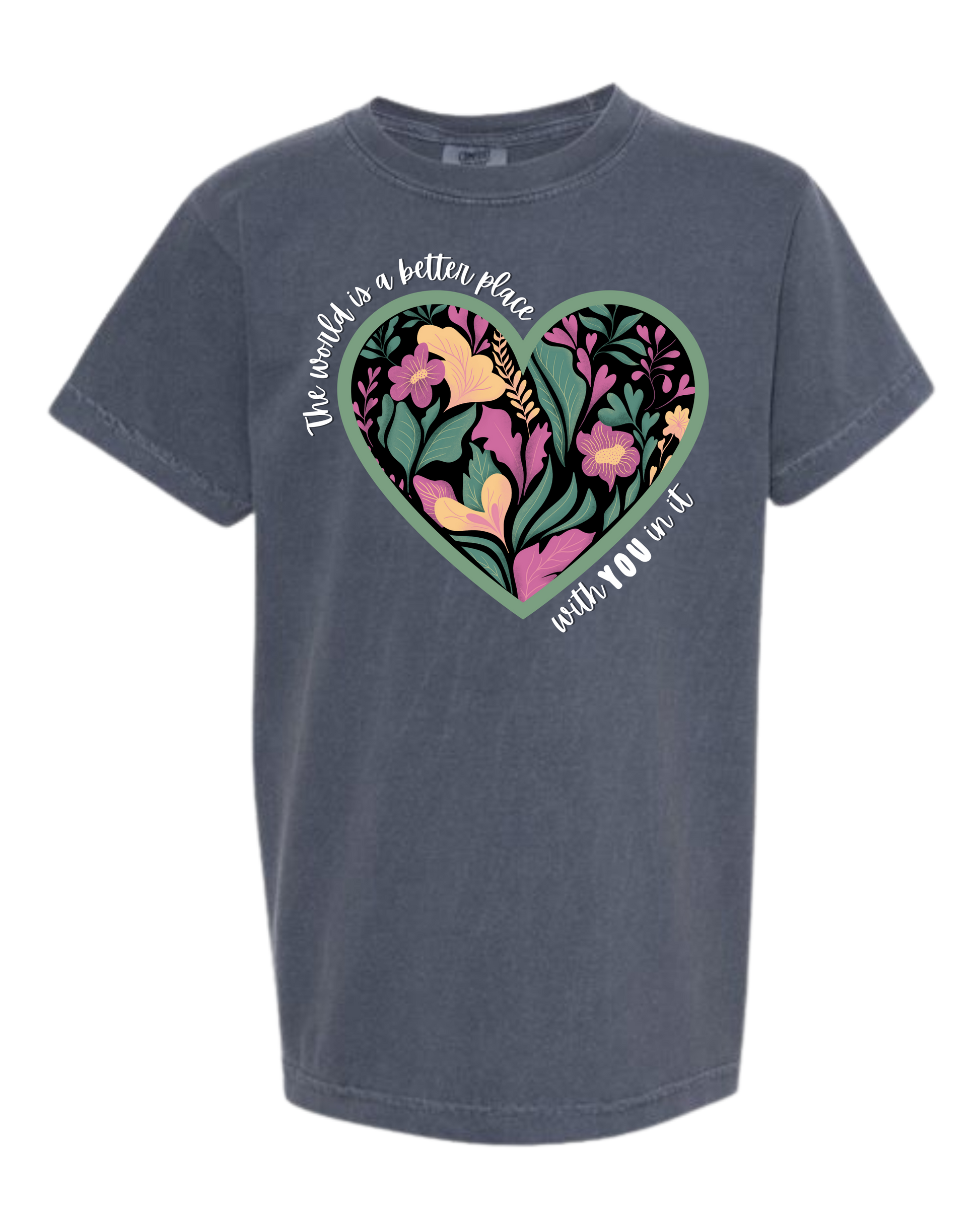 The World Is A Better Place With YOU In It - Comfort Colors - Heavyweight Youth Tee - Neutral Colors & Blues
